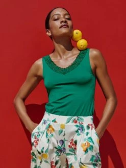 Zugegeben, die Namensgebung für das ärmellose NATURAL COMFORT LACE Top von CALIDA ist nicht besonders originell. Schließlich verrät der Titel bereits alles, worauf sich Frau hier freuen darf: Spitze in einem modernen Ton ergänzt ein komfortables Unterhemd mit V-Ausschnitt, das die Haut dank natürlicher Baumwolle in jeder Saison atmen lässt.