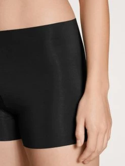 Das ist kein Zaubertrick, sondern einfach eine kluge Verarbeitungsidee: Die NATURAL SKIN Pants von CALIDA in verführerischem Schwarz verschwinden unsichtbar unter Hosen, Kleidern oder engen Röcken. Nachhaltige und biologisch abbaubare TENCEL™ / ROICA™-Fasern werden in einem Clean-Cut-Verfahren zu einer schwerelosen Unterhose verarbeitet, die mit ihrem längeren Bein für einen extra angenehmen Support-Effekt sorgt.