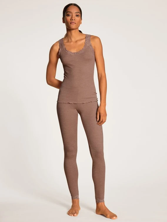 Top mit zarter, wertvoll eingearbeiteter Spitze am Rundhalsausschnitt und Armabschluss. Die bewährte CALIDA Schurwolle/Seide-Unterwäsche ist kuschelig warm und schmeichelt zugleich seidig weich empfindlicher Haut. Das natürliche Fasergemisch ist wunderbar leicht und temperaturausgleichend und somit nicht nur für die kalte Jahreszeit ein ideales Darunter.