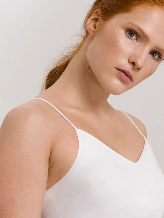 Das Bestseller Spaghetti-Top von HANRO aus der “Cotton Seamless” Kollektion gibt es jetzt neu als BH-Top mit herausnehmbaren Polstern. Feinste, weiche, merzerisierte Baumwolle und die saum- und seitennahtfreie Verarbeitung schaffen ein angenehmes Tragegefühl. Die zarte Satineinfassung sorgt für einen edlen, klassischen Look.