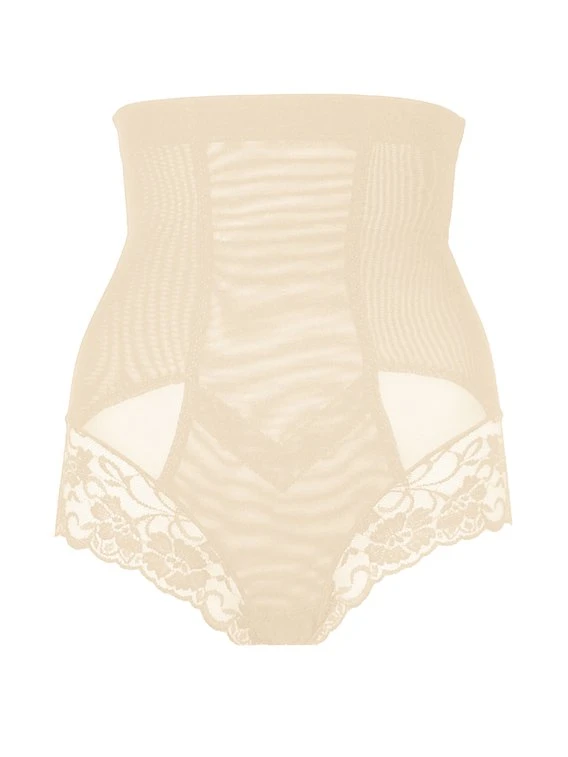 Die Panty mit Shaping-Effekt von MAGIC BODYFASHION besteht aus leichtem Mesh-Material, das den Bauchbereich und den unteren Rückenbereich fest formt. Die transparenten und atmungsaktiven Stoffe werden mit schöner Spitze kombiniert und verleihen der Highwaist Shaping-Panty einen femininen und sexy Look. Der spezielle Silikonstreifen an der Innenseite des Oberteils verhindert, dass der Slip bei Bewegungen nach unten rollt und unbequem einschneidet.