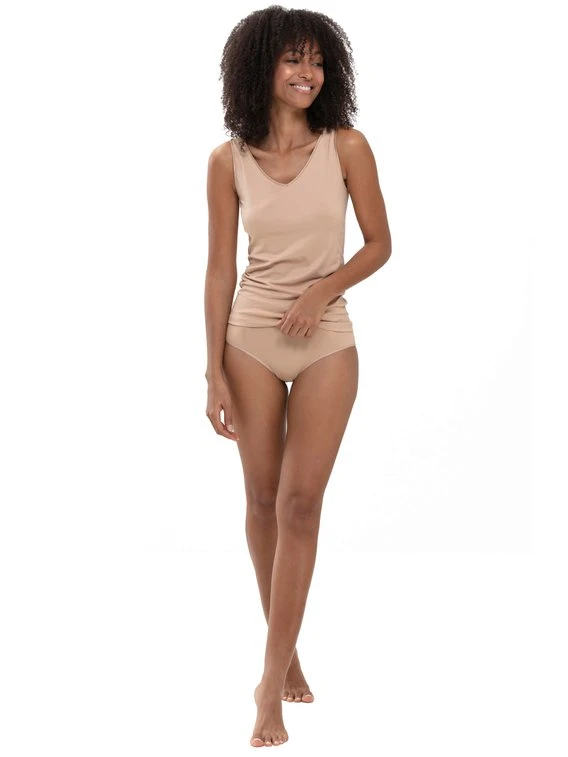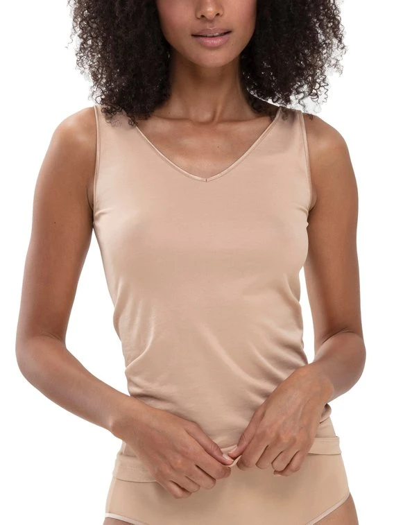 Das 2-in-1 Top der zeitlosen „Emotion“ Kollektion aus dem Hause MEY ist der perfekte Alltagsbegleiter! Das Unterhemd verfügt über einen V-Ausschnitt auf der einen und einen Rundhalsausschnitt auf der anderen Seite. So bietet das Tanktop flexible Trage- und Kombinationsmöglichkeiten. Das ärmellose Unterhemd besteht aus einem weichen, langlebigen und elastischen Viskose-Mix für ein natürliches Tragegefühl. Zudem verzichtet MEY bei der Produktion dieses Tops auf Seitennähte, um höchsten Komfort zu bieten.