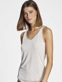 Das Top aus der Serie “Poetry Classy” von MEY überzeugt mit einer hohen Qualität und einem luxuriösen, dezent schimmernden Materialmix. Das elastische Gewebe aus Viskose bietet ein natürliches Tragegefühl des Unterhemdes. Der taillierte Schnitt und der feminine V-Ausschnitt des Tank-Tops sorgen zudem für einen bequemen Sitz und eine legere Passform.