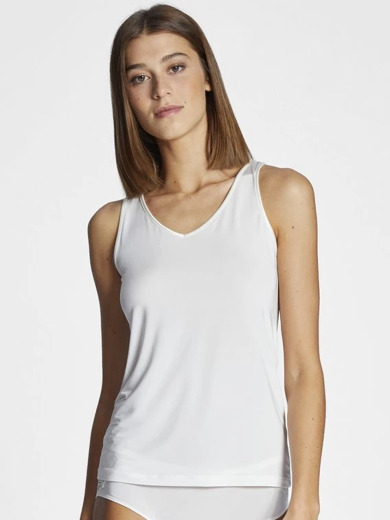 Das Top aus der Serie “Poetry Classy” von MEY überzeugt mit einer hohen Qualität und einem luxuriösen, dezent schimmernden Materialmix. Das elastische Gewebe aus Viskose bietet ein natürliches Tragegefühl des Unterhemdes. Der taillierte Schnitt und der feminine V-Ausschnitt des Tank-Tops sorgen zudem für einen bequemen Sitz und eine legere Passform.