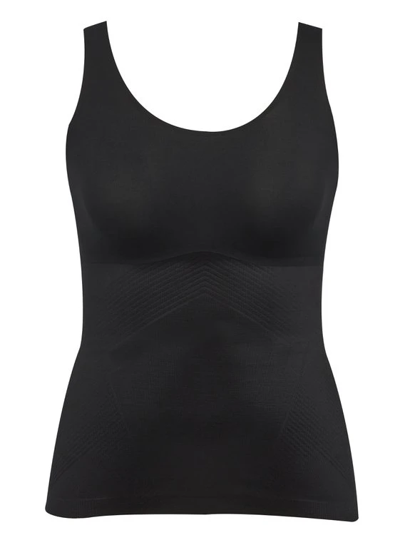 Mehr Halt und mehr Komfort verspricht das Tanktop von SPANX aus der Serie „Thinstincts 2.0“. Aufgrund des atmungsaktiven und leichten Materials liegt das Top angenehm auf der Haut an. Zudem ist es durch seine flache Naht-Verarbeitung unter enger Kleidung unsichtbar. Das Top besitzt ein besonders ansprechendes Shaping-Level im Bereich des Bauches. Die Träger sind breit gestaltet und verdecken somit auch darunterliegende BH-Träger.