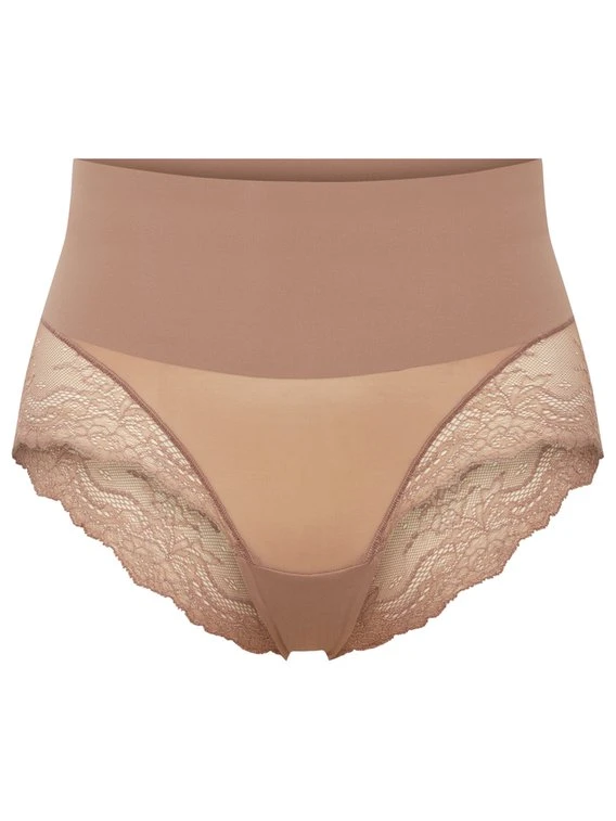 Die Lace-Hi-Hipster Panty aus der “Undie-Tectable” Serie der Hollywood-Marke SPANX besteht aus einer raffinierten Kombination aus weichem, langlebigem Stretchmaterial und feiner, transparenter Spitze. Der hohe Bund der Panty wirkt leicht modellierend und kaschiert ein kleines Bäuchlein, während die weichen Abschlüsse und das flache Design das Höschen unsichtbar unter der Kleidung machen.