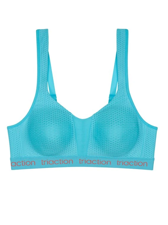 Der Sport-BH von TRIACTION BY TRIUMPH aus der „Energy Lite“ Serie besticht durch sein innovatives Material und der stützenden Schnittform. Mit dem BH kann man so richtig ins Schwitzen kommen, da die Funktionsfasern die Feuchtigkeit schnell ableiten. Zudem leistet die Spacer-Technologie an den Cups einen erheblichen Beitrag zum uneingeschränkten Tragekomfort. Die Second-Skin-Verarbeitung lässt den BH weich und komfortabel auf der Haut anliegen.