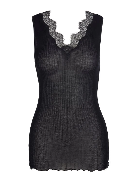 zarter Spitzenbesatz an den Armausschnitten und am V-Ausschnitt